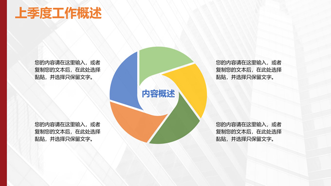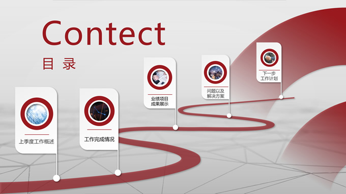简介:个人季度总结汇报商务通用ppt模板,本模板共25P,淡雅灰商务大图背景,圆环几何风标题文字极简封面、目录页、过渡页,深红配色,极简版式,适合个人季度总结汇报、个人工作总结计划等场景应用的几何风商务通用ppt模板。