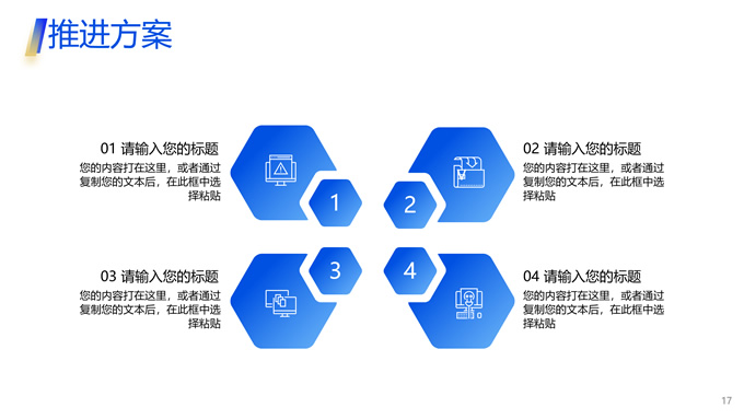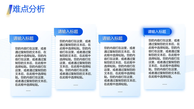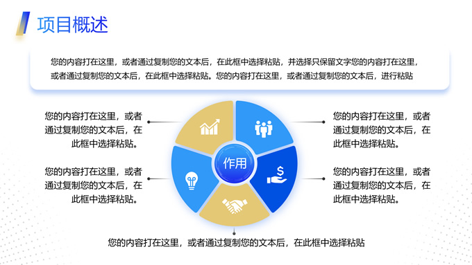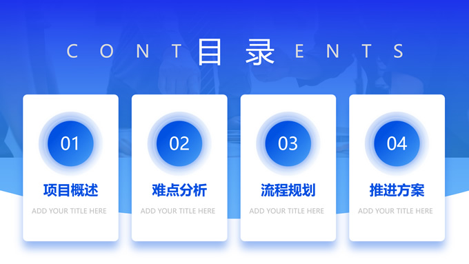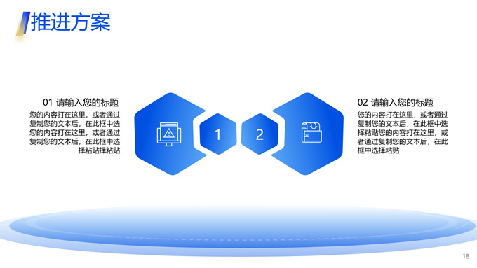 简介:弧度几何风简约工作汇报商务通用ppt模板,本模板共20P,目录:项目概述、难点分析、流程规划、推进方案,弧度几何风创意封面、目录页,质感渐变蓝配色,阴影风格图表,简约商务版式内容页,适合工作汇报、年度汇报等场景应用的商务通用ppt模板。