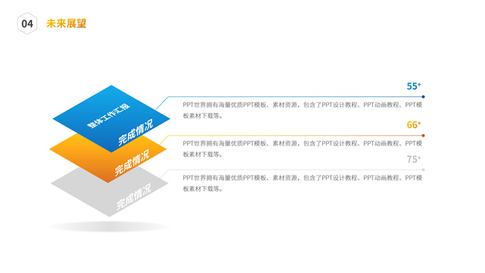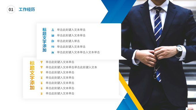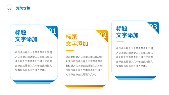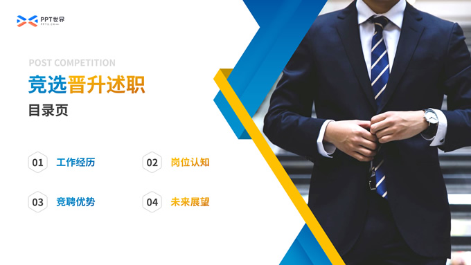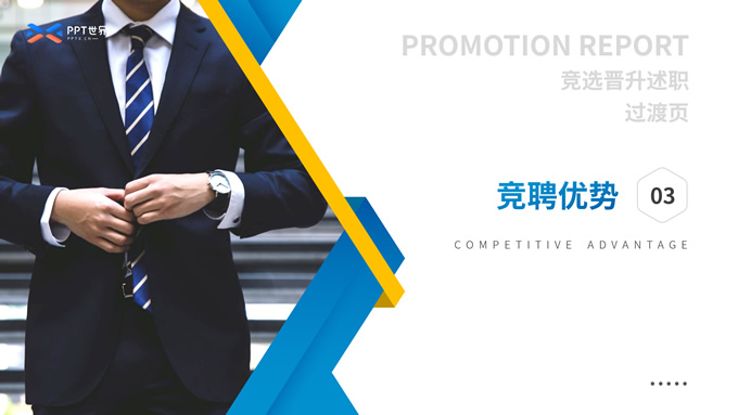 简介:炫酷几何风岗位晋升述职报告ppt模板,本模板共19P,目录:工作经历、岗位认知、竞聘优势、未来展望,几何图形裁图几何风标题文字封面、目录页、过渡页,黄蓝配色,阴影风格图表,简约活力风版式内容页,适合晋升述职、竞选、工作汇报等场景应用的几何风商务通用ppt模板。