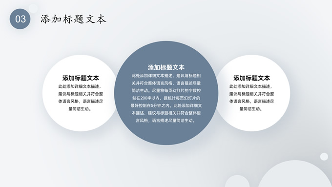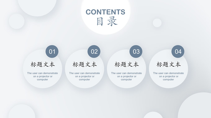 简介:淡雅阴影几何圆总结汇报商务通用ppt模板,本模板共19P,渐变灰背景,阴影几何圆几何风标题文字封面、目录页、过渡页,蓝灰配色,阴影风格图表,淡雅简约清新商务版式内容页,适合工作总结 、工作汇报、述职、竞职等场景应用的淡雅几何风商务通用ppt模板。