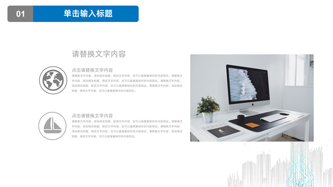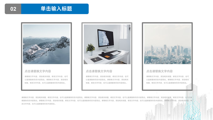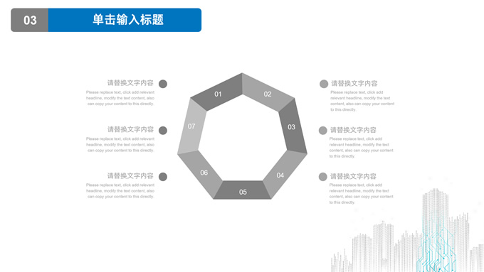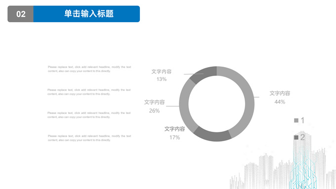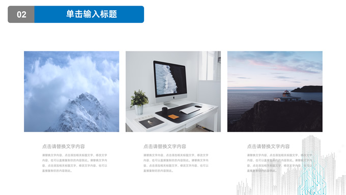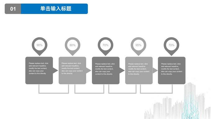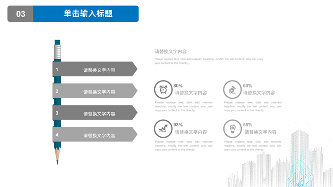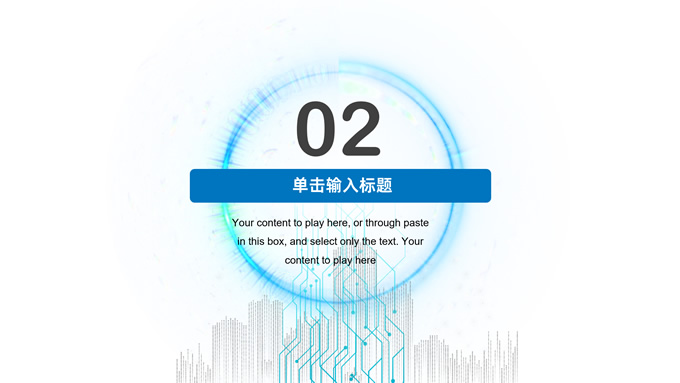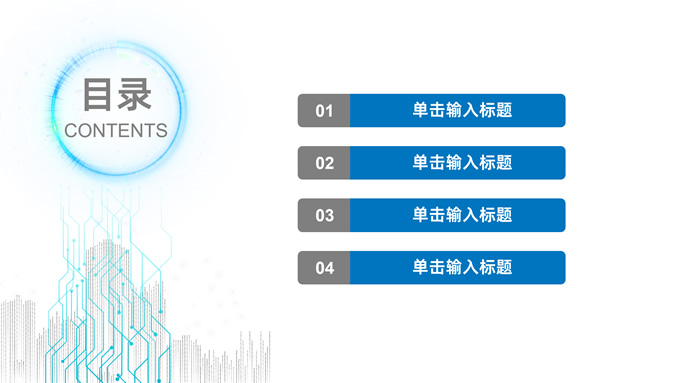 简介:极简科技风商务汇报通用ppt模板,本模板共23P,蓝色科技环背景,点阵城市剪影、电路图科技元素创意极简封面、目录页、过渡页,蓝灰配色,扁平化图表,极简约商务风版式内容页,适合工作计划、工作汇报、工作述职等场景应用的科技风商务通用ppt模板。