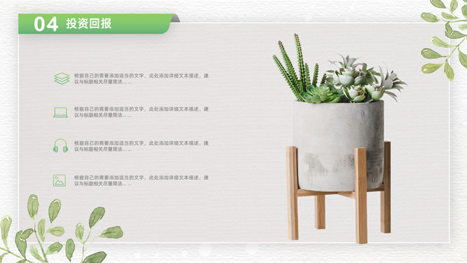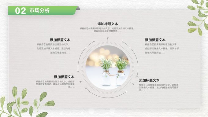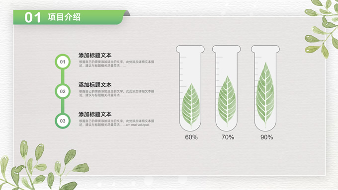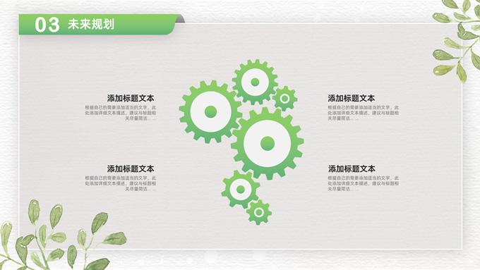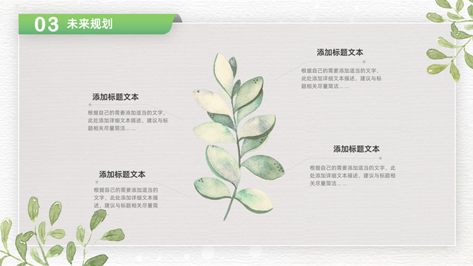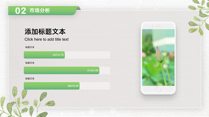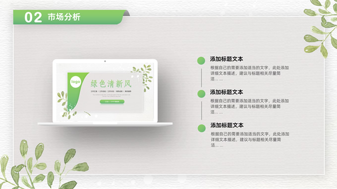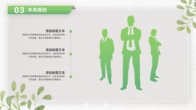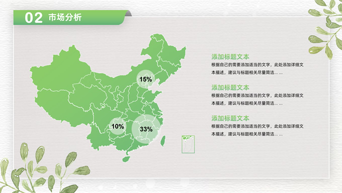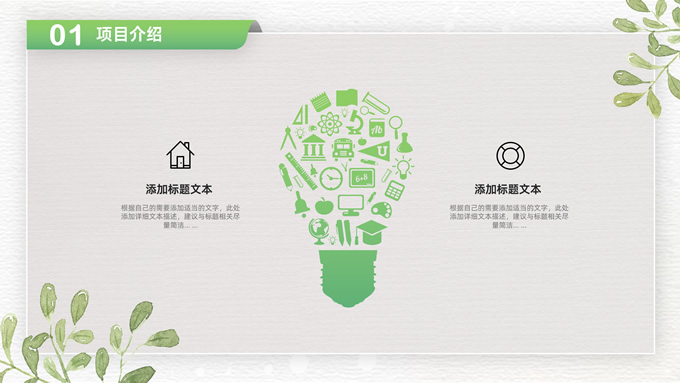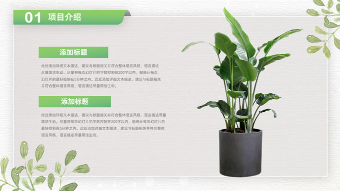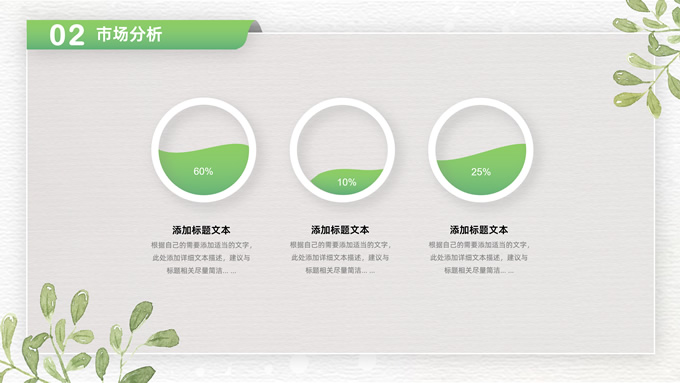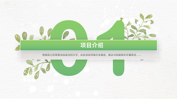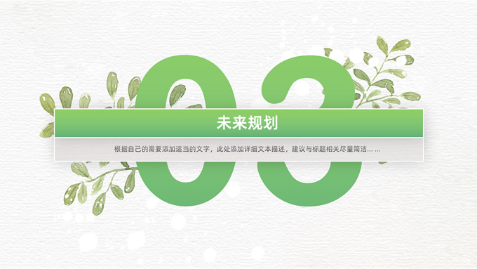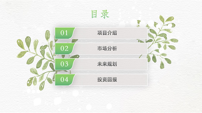 简介:卡片式阴影春绿清新风计划书商务通用ppt模板,本模板共28P,目录:项目介绍、市场分析、未来规划、投资回报,凹凸纹理糙纸背景,卡片式风格创意封面,小清新渐变绿配色,阴影风扁平化两种风格图表,卡片式简约版式内容页,适合项目汇报、计划书、工作总结报告等场景应用的商务通用ppt模板。