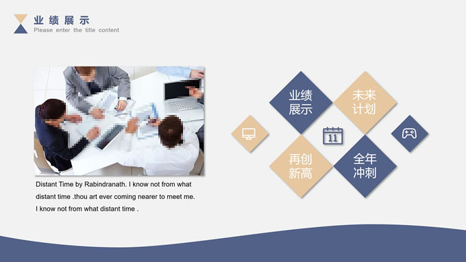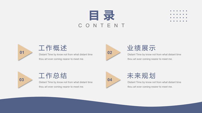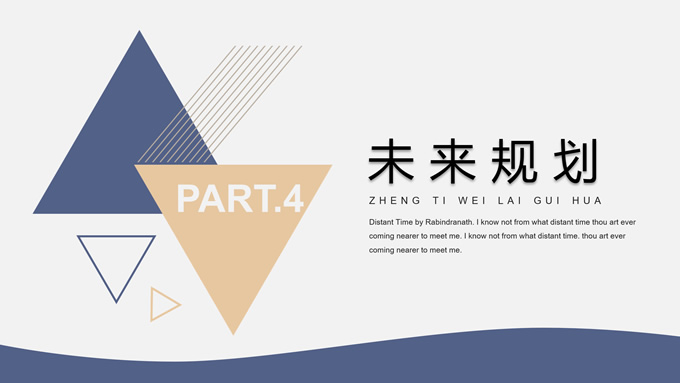 简介:几何三角形几何风扁平蓝黄商务通用ppt模板,本模板共25P,目录:工作概述、业绩展示、工作总结、未来规划,淡雅灰背景,几何三角形线条几何风创意封面、目录页、过渡页,蓝黄配色,扁平化图表,简约商务范版式内容页,适合工作总结、工作汇报、工作计划等场景应用的几何风商务通用ppt模板。