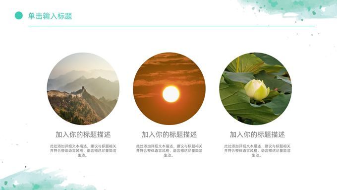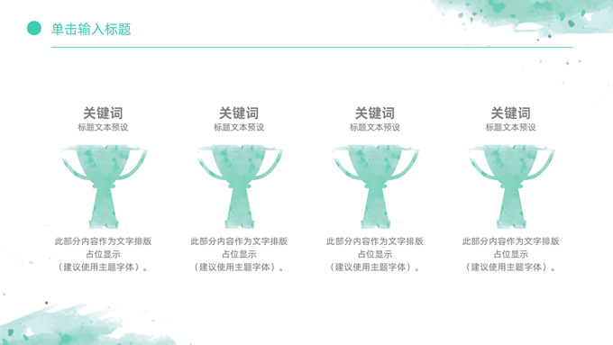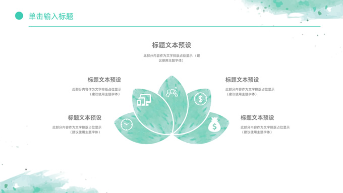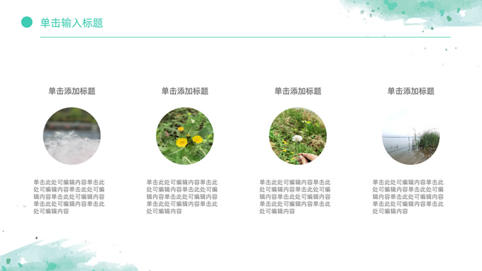 简介:文艺水彩小清新总结汇报商务通用ppt模板,本模板共25P,水彩墨迹、水彩花卉植物主图标题文字创意封面、目录页、过渡页,小清新绿配色,水彩元素填充图表简约文艺风版式内容页,适合工作汇报、工作总结、工作计划等场景应用的文艺清新商务通用ppt模板。