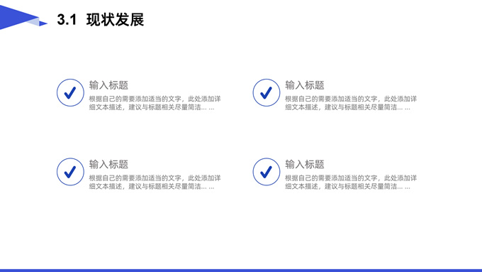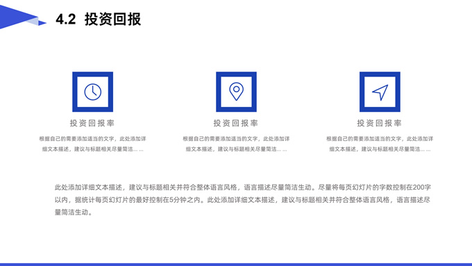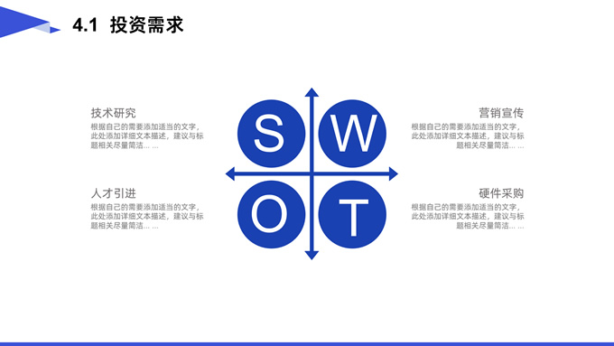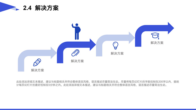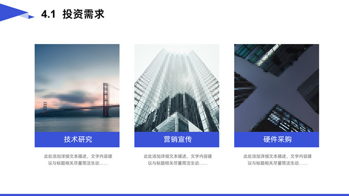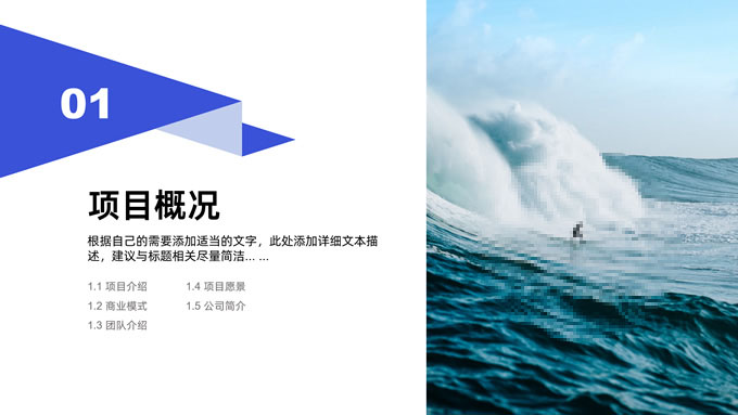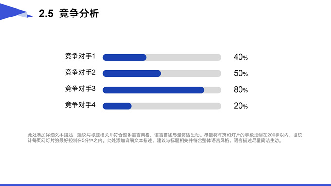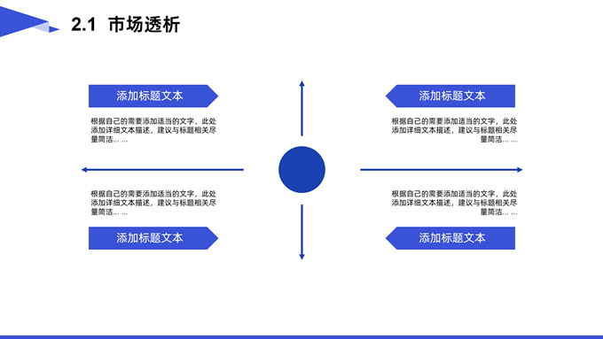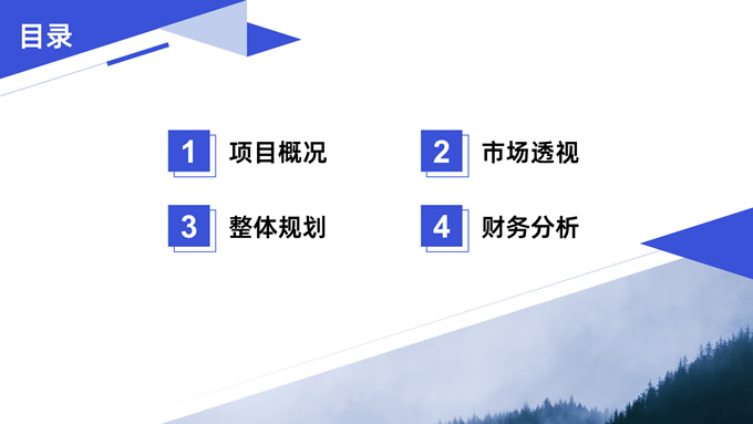 简介:亮蓝扁平几何风商业项目计划书ppt模板,本模板共25P,目录:项目概况、市场透视、整体规划、财务分析,几何图形裁图几何风创意封面、目录页、过渡页,亮蓝配色,扁平化图表,简约商务范版式内容页,适合项目汇报、计划书等场景应用的商务通用ppt模板。