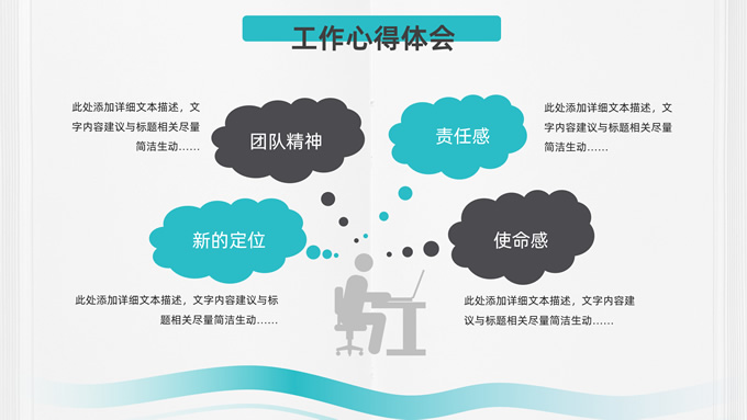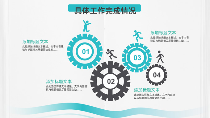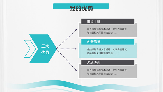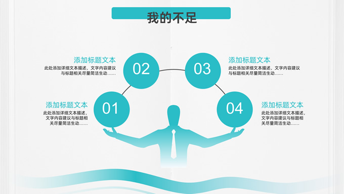简介:极简约实用几何风述职报告ppt模板,本模板共26P,目录:工作回顾、自我评价、工作体会、工作规划,几何圆圈、波浪线条、奔跑跨栏的人物剪影元素创意封面、目录页、过渡页,小清新绿配色,扁平化图表,框架结构完整,适合述职报告、工作计划等场景应用的几何风ppt模板。