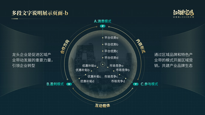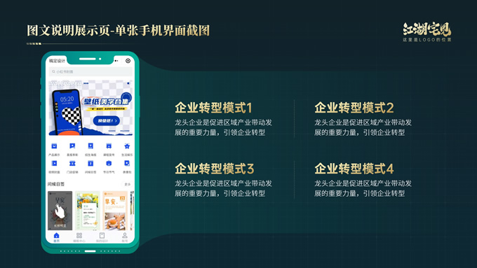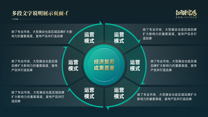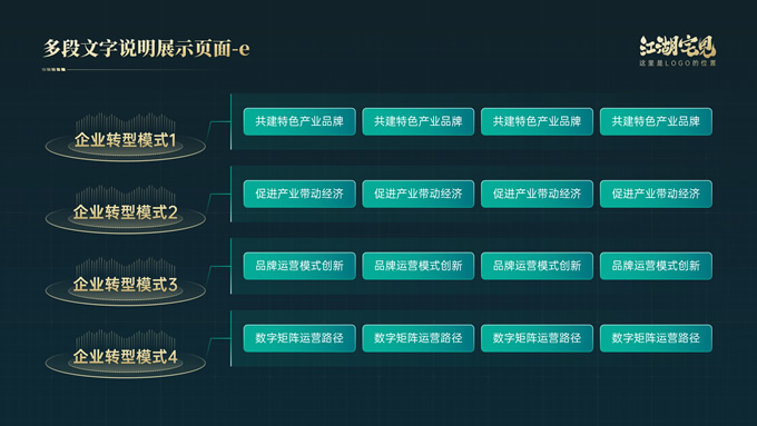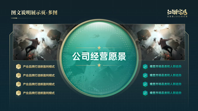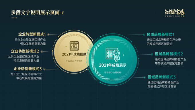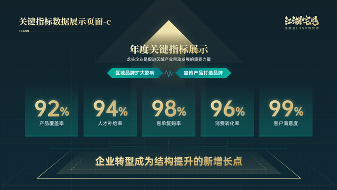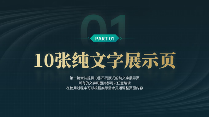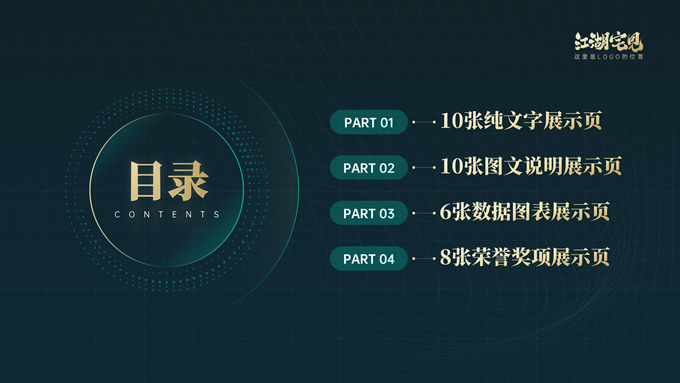 简介:完整版式框架高端绿金年终总结汇报ppt模板,本模板共41P,几何图形线条科技风创意封面、目录页、过渡页,绿金配色,实用大气科技风版式内容页,包括:10张纯文字展示页、10张图文说明展示页、6张数据图表展示页、8张荣誉奖项展示页,适合年终总结、工作汇报、工作计划等场景应用的科技风商务通用ppt模板,稿定年终PPT模板大赛 阿宅 作品。