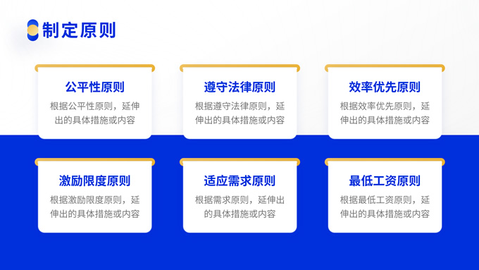 简介:人力人事薪酬方案ppt模板,本模板共11P,目录:制定原则、适用范围、工资结构、薪酬发放细则,偏简约风,插图,饱和度高,创意设计封面、目录页、过渡页等页面,商务蓝搭配黄色,适合用于工作总结、工作汇报、薪酬方案等人力人事部工作场合,P界达人 多梦 作品。