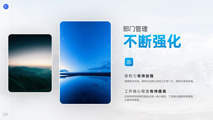 简介:用户运营部年度工作总结ppt模板,本模板共20P,目录:工作数据分析、问题解决方案、工作规划展望,几何风封面、目录页,商务蓝配色,阴影风格图表,简约精美卡片式UI几何风版式内容页,适合年度汇报、年终总结等场景应用的产品运营部总结汇报通用型ppt模板,稿定年终PPT模板大赛 弎十二 作品。