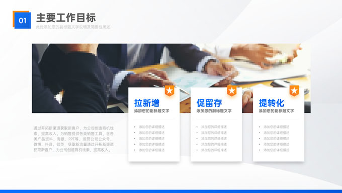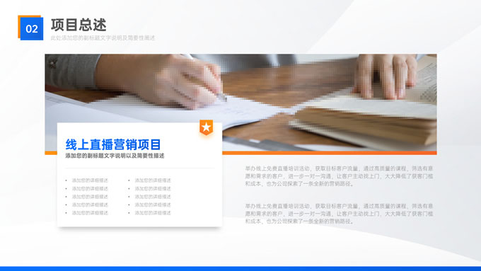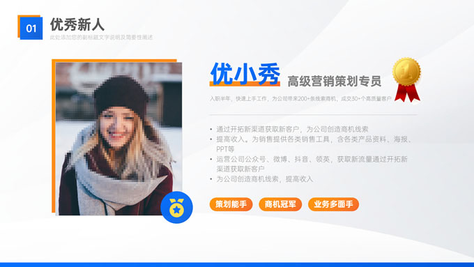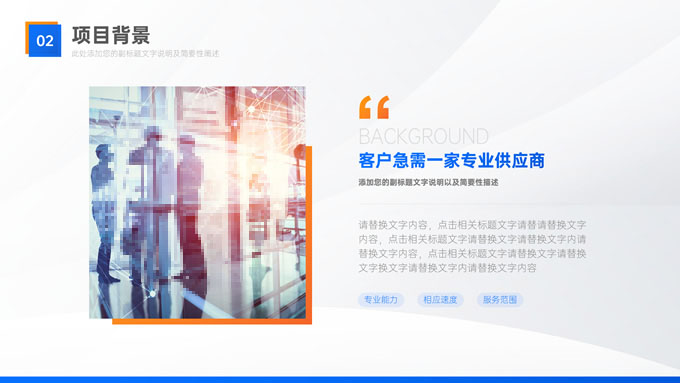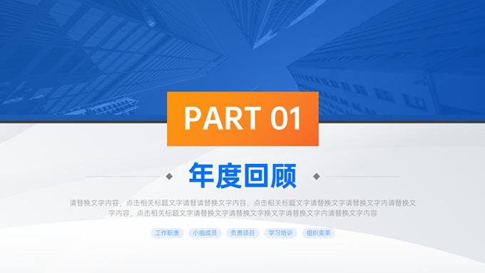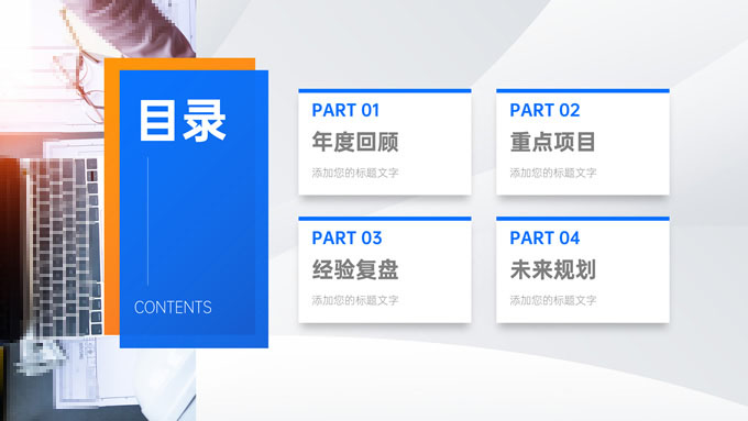 简介:蓝橙几何风部门年终总结汇报商务ppt模板,本模板共32P,目录:年度回顾、重点项目、经验复盘、未来规划,几何图形线条标题文字创意封面、目录页,蓝橙配色,精美阴影风格图表,高端大气商务范版式内容页,适合年终总结、工作汇报、新年工作计划等场景应用的蓝橙几何风商务通用ppt模板,稿定年终PPT模板大赛 张天奇 作品。