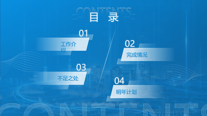 简介:半透明几何风年终工作总结商务通用ppt模板,本模板共20P,目录:工作介绍、完成情况、不足之处、明年计划,商务大图科技网点背景,半透明渐变几何图形几何风标题文字创意封面、目录页、过渡页,商务蓝配色,商务范版式内容页,适合年终总结、工作汇报等场景应用的几何风商务通用ppt模板,P界达人 山猪 作品。