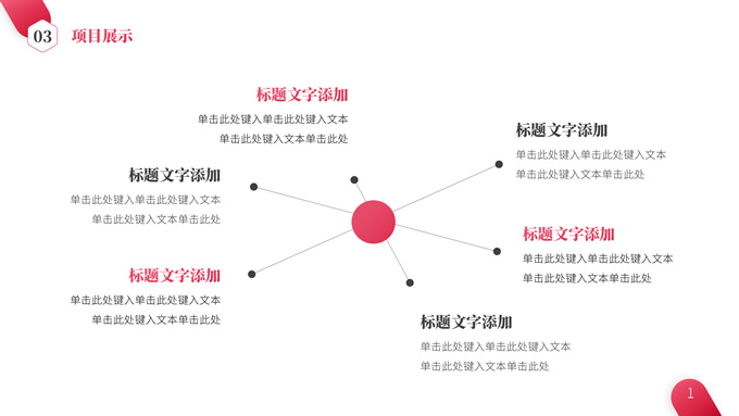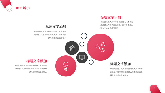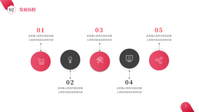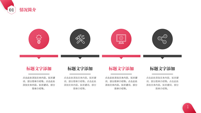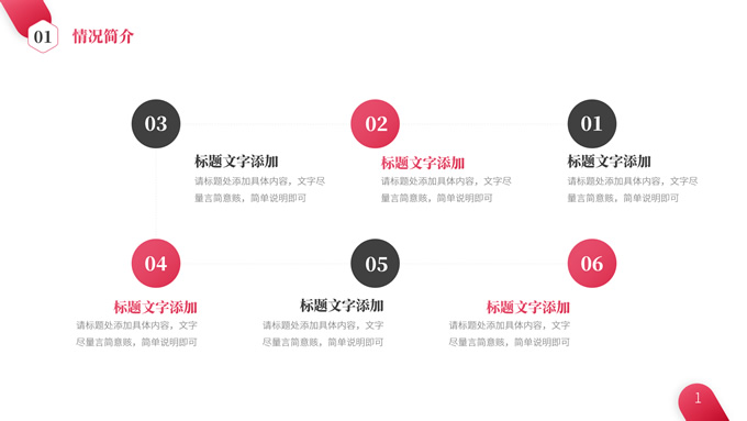 简介:几何风商业路演融资ppt模板,本模板共19P,目录:情况简介、发展历程、项目展示、团队介绍,几何风封面、目录页、过渡页,红灰配色,纯白背景扁平化图表内容页,适合创新创业商业路演融资、项目汇报等场景应用的几何风商务通用ppt模板。