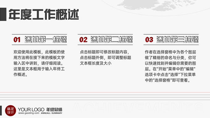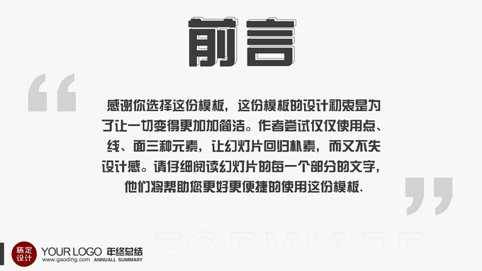 简介:点线面创意精美实用朴素风年终工作汇报ppt模板,本模板共32P,目录:年度总览、年终总结、问题总结、新年目标,点、线、面三种元素创意朴素风版式内容页,精美实用框架完整,适合年终总结、年终汇报、新年工作计划等场景应用的年终总结汇报通用型ppt模板,稿定年终PPT模板大赛 xpowerpointstudio 作品。