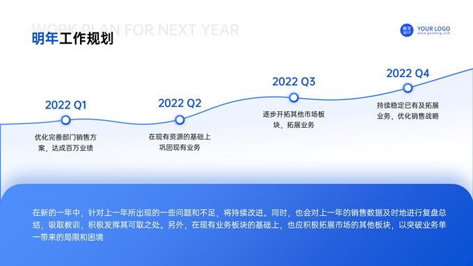简介:矢量插画流体几何风年终总结汇报ppt模板,本模板共23P,目录:工作概述、成果展示、问题归纳、未来规划,矢量商务插画主图流体几何风创意封面、目录页,圆形几何风过渡页,渐变蓝配色,阴影风格图表,简洁高端版式内容页,适合年终汇报、工作总结等场景应用的流体几何风商务通用ppt模板,稿定年终PPT模板大赛 林先森 作品。