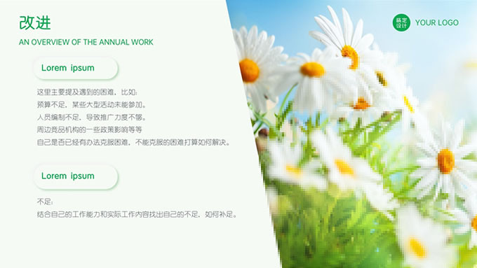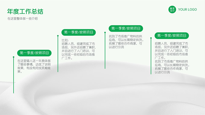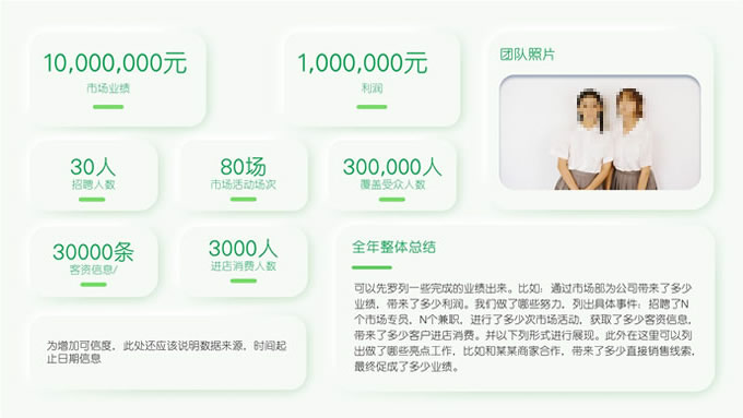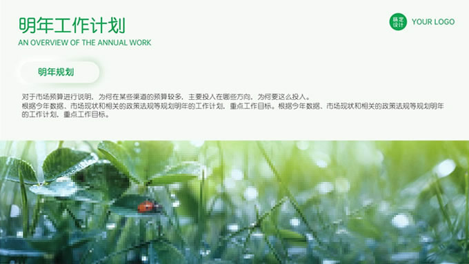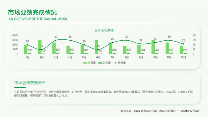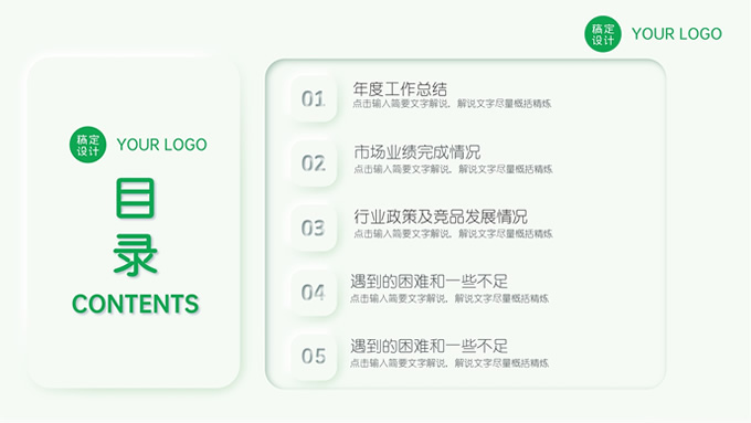 简介:绿色清新新拟态风市场部年终总结汇报ppt模板,本模板共28P,目录:年度工作总结,市场业绩完成情况,行业政策及竞品发展情况,遇到的困难和一些不足,小清新绿配色,新拟态风版式内容页,适合工作汇报、年终总结等场景应用的市场部总结汇报通用型ppt模板,稿定年终PPT模板大赛 旺小旺 作品。