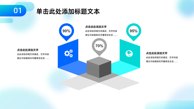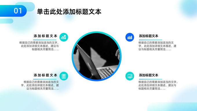 简介:唯美时尚几何风工作汇报ppt模板,本模板共19P,朦胧半透明圆背景,时尚几何风创意封面、目录页、过渡页,蓝绿渐变配色,扁平化图表,活力清新简约风版式内容页,适合工作汇报、年终总结、新年工作计划等场景应用的几何风商务通用ppt模板。