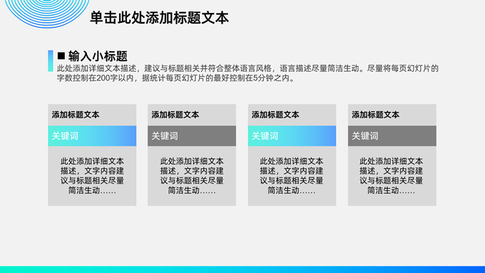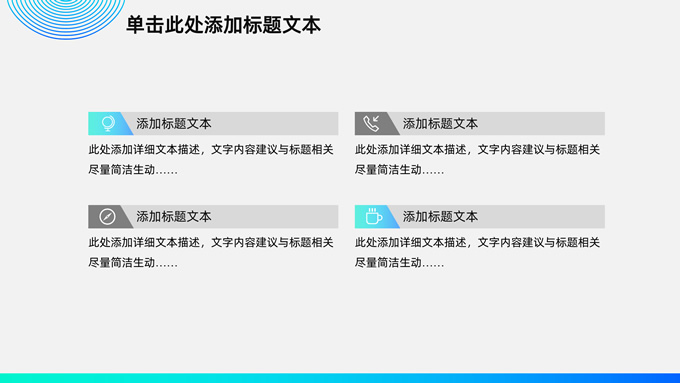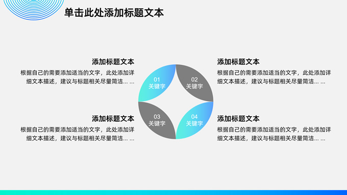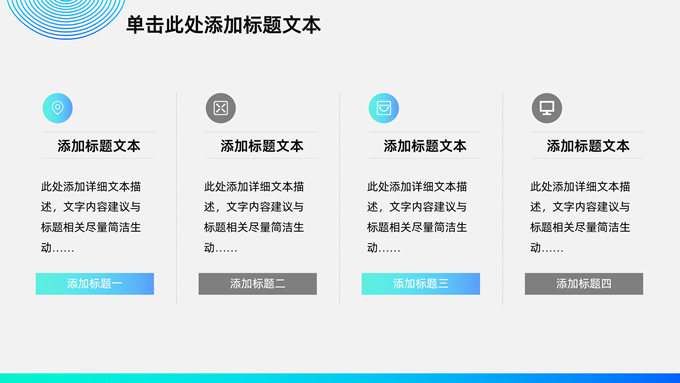 简介:时尚圆圈几何风商务通用总结汇报ppt模板,本模板共18P,圆圈裁图、圆圈、等高线条创意封面、目录页、过渡页,时尚渐变蓝紫配色,扁平化图表,商务范版式内容页,适合工作总结、工作汇报等场景应用的商务演示通用ppt模板。