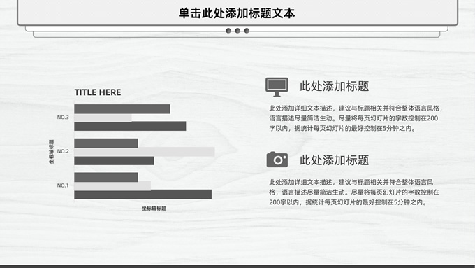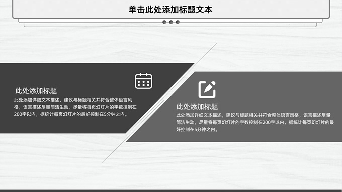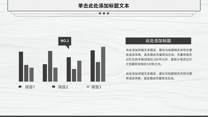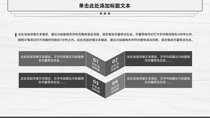 简介:简约素雅小清新工作汇报商务通用ppt模板,本模板共22P,淡雅灰木纹背景,几何线条框几何风极简封面、目录页、过渡页,经典灰配色,扁平化图表,适合工作汇报、工作总结等场景应用的经典素雅商务通用ppt模板。
