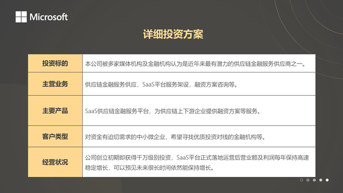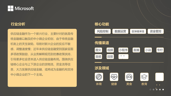 简介:极简几何风高端黑金金融计划书ppt模板,本模板共28P,目录:项目概述、市场分析、项目规划、联系我们,金灰背景,金色配色,极简几何风封面、过渡页,简约高端版式内容页,扁平化图表,适合项目计划书、总结汇报等场景应用的金融行业通用ppt模板。