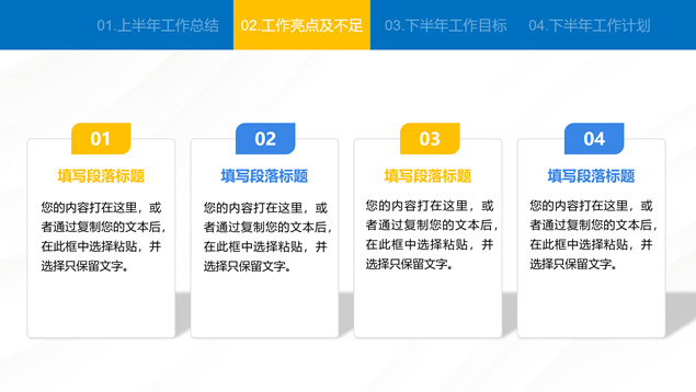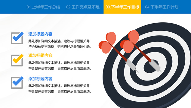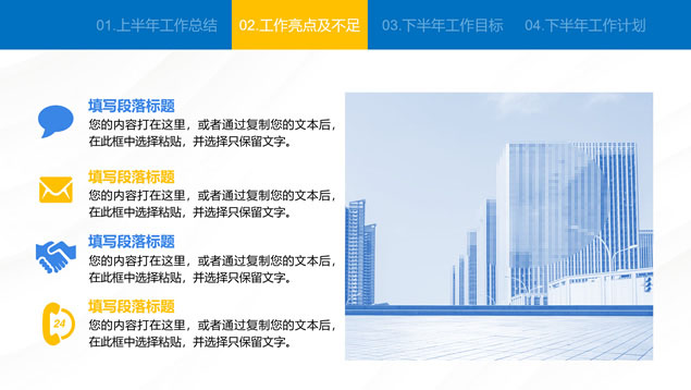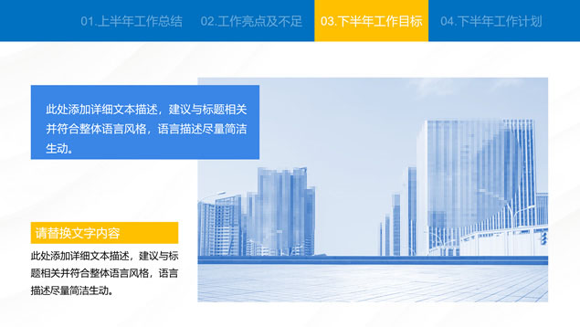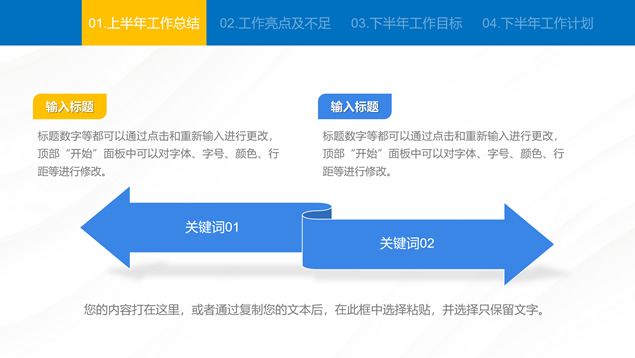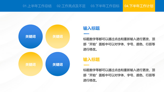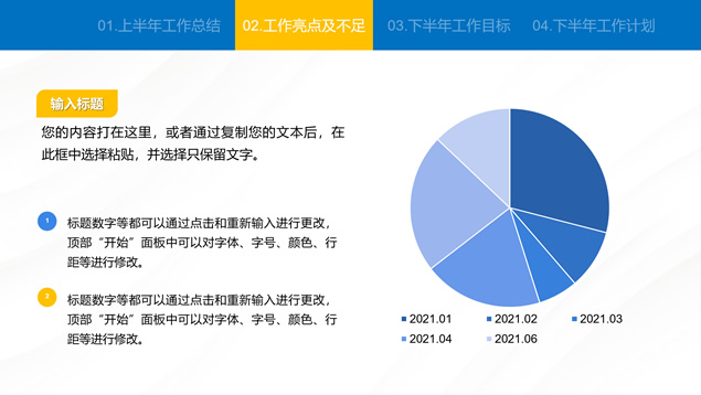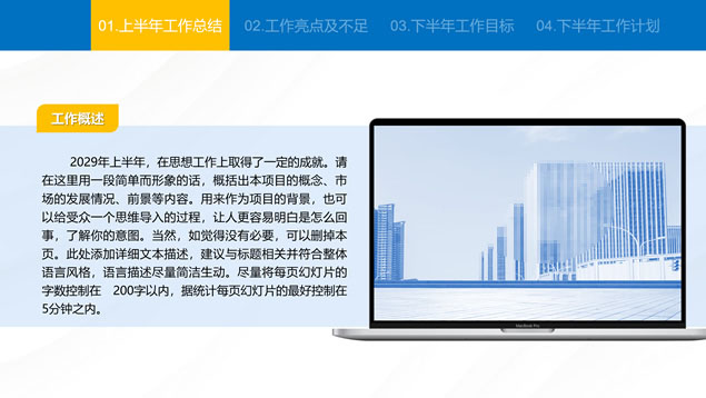 简介:蓝色简约大气商务风工作总结汇报通用ppt模板,本模板共24P,汇报内容包括:工作回顾、工作亮点及不足、工作目标、工作计划四方面,商务蓝配色,适合工作总结、工作汇报等场景应用的商务演示通用ppt模板,“P界达人”老张 作品。