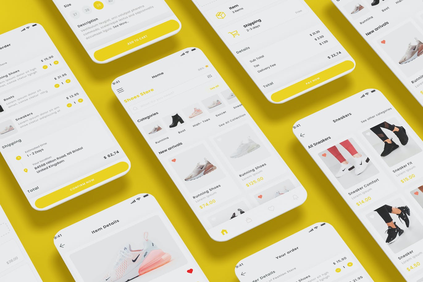 这次老不湿分享的是,高品质的运动鞋类电子商务APP UI KITS-FIG, PSD, SKETCH, XD,Sketch、Figma、Adobe XD 和 Adobe Photoshop 模板。
