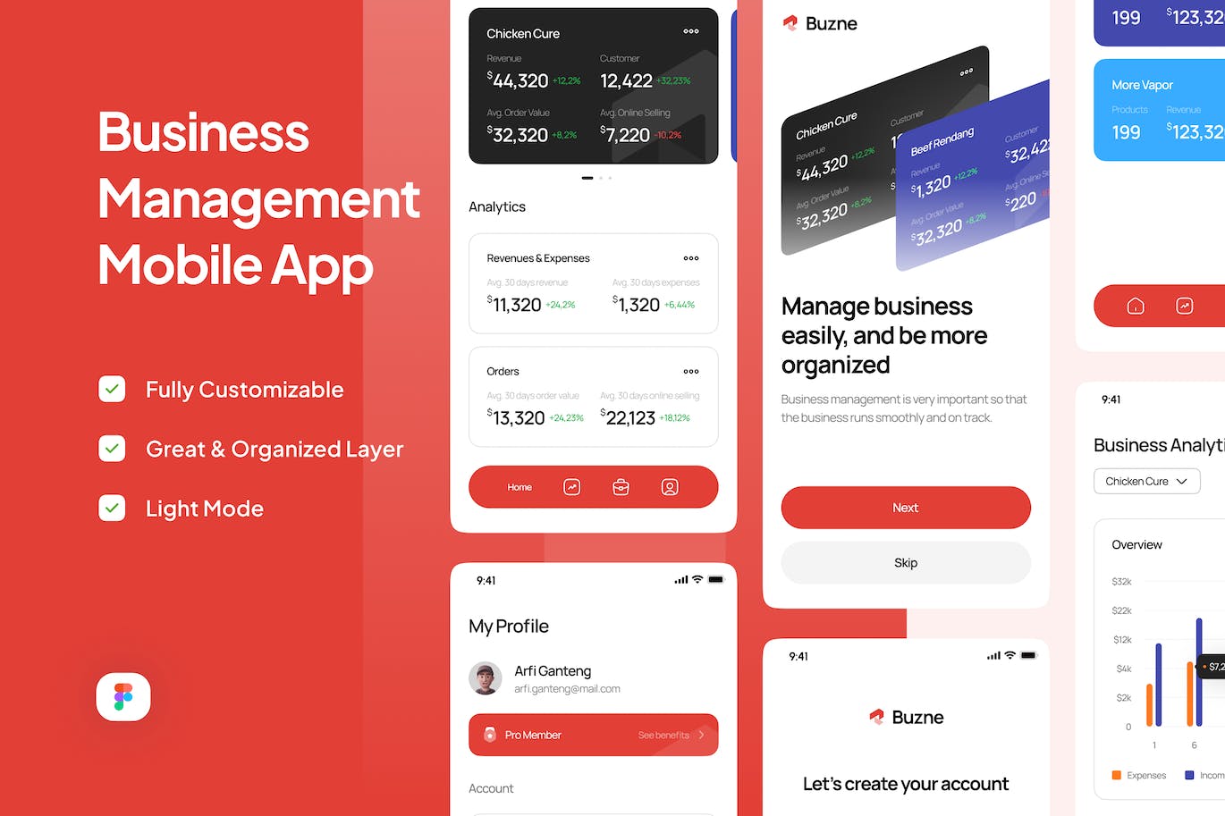Buznes是一款简洁、极简、现代设计的商业管理移动应用程序。Buznes适合并易于完全定制,以满足您的需求。可在灯光模式下使用,在Figma中使用方便。