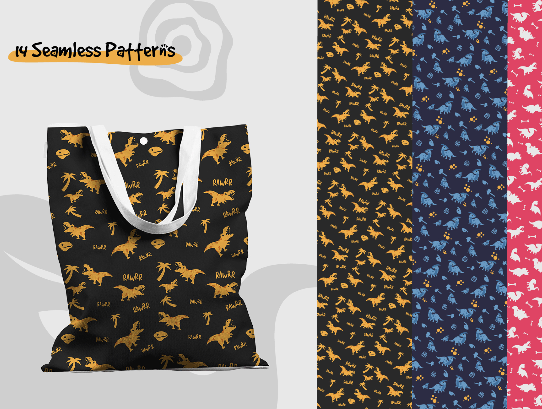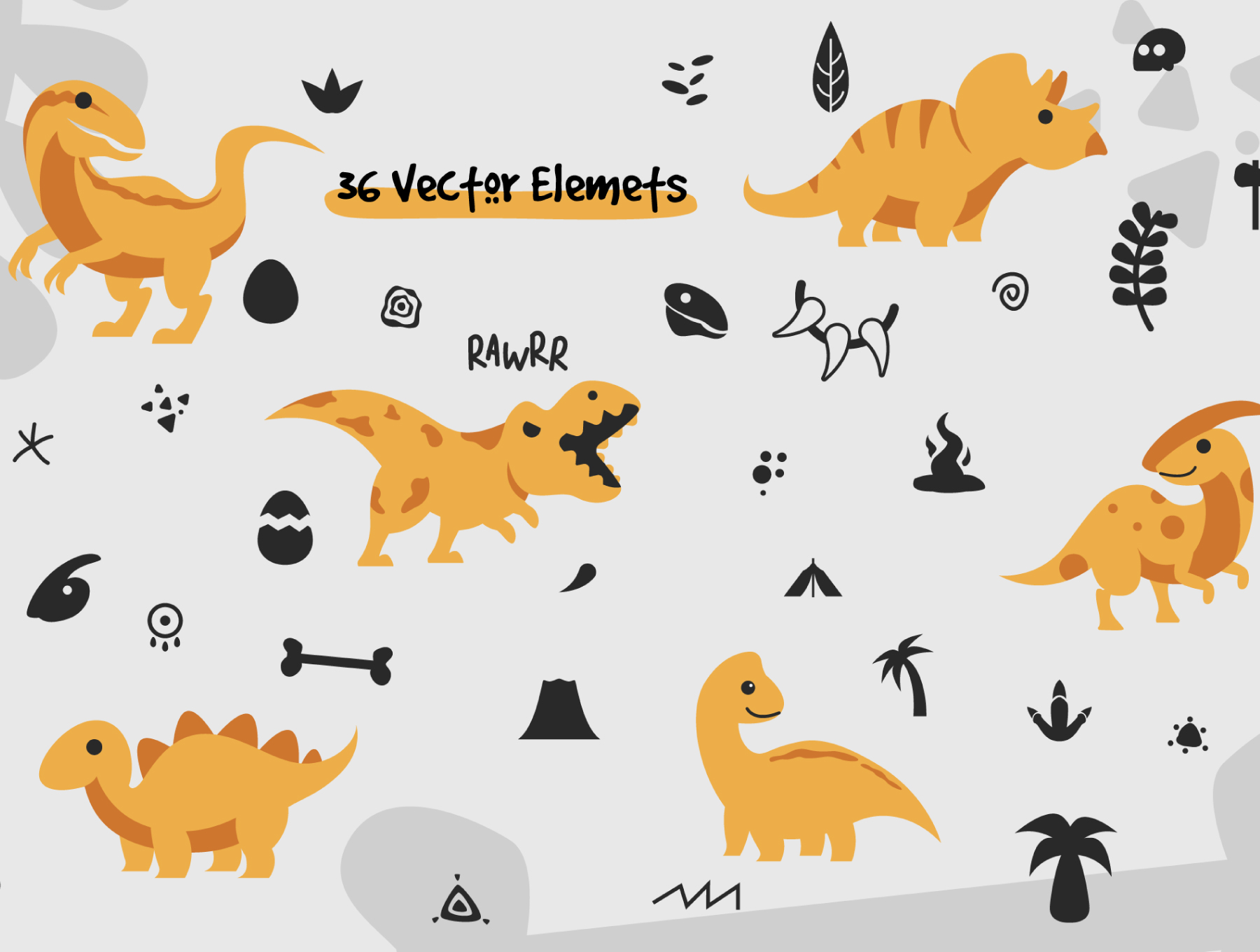 这个侏罗纪素材包含一包图形矢量元素和无缝图案。36 个图形矢量元素 -(EPS 10、AI、PNG 透明)和14 个无缝图案 -(EPS 10、AI、JPEG)。