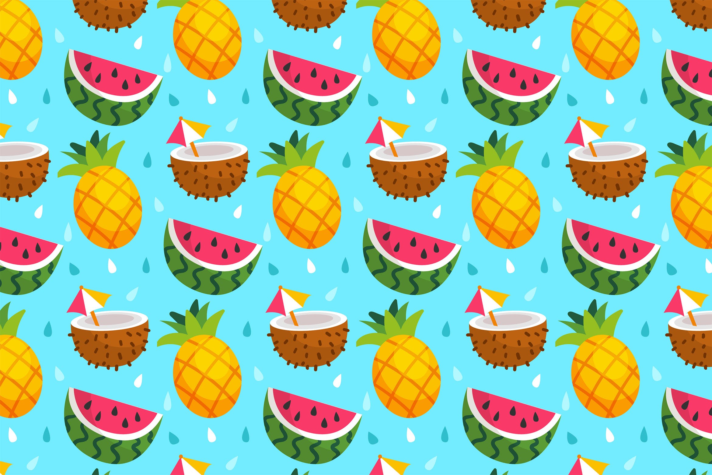 热带水果图案矢量背景,您可以为海报印刷框架、织物、衣服、杯子、别针按钮、枕头、手提袋、束带/拉链袋、墙纸桌面、手机壳等创建无数种形式。