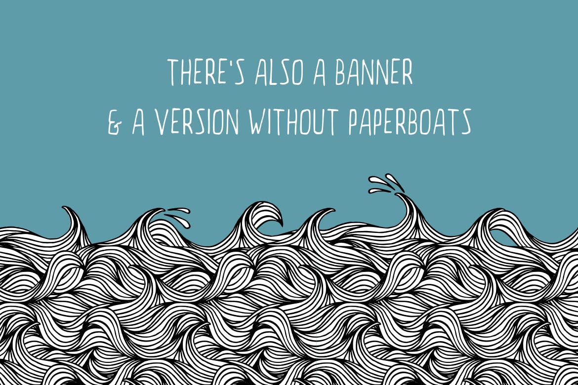 波浪纹理无缝图案设计素材。 它有两种颜色版本和黑白版本。 您也可以在没有纸船的情况下使用它,并且还有横幅。