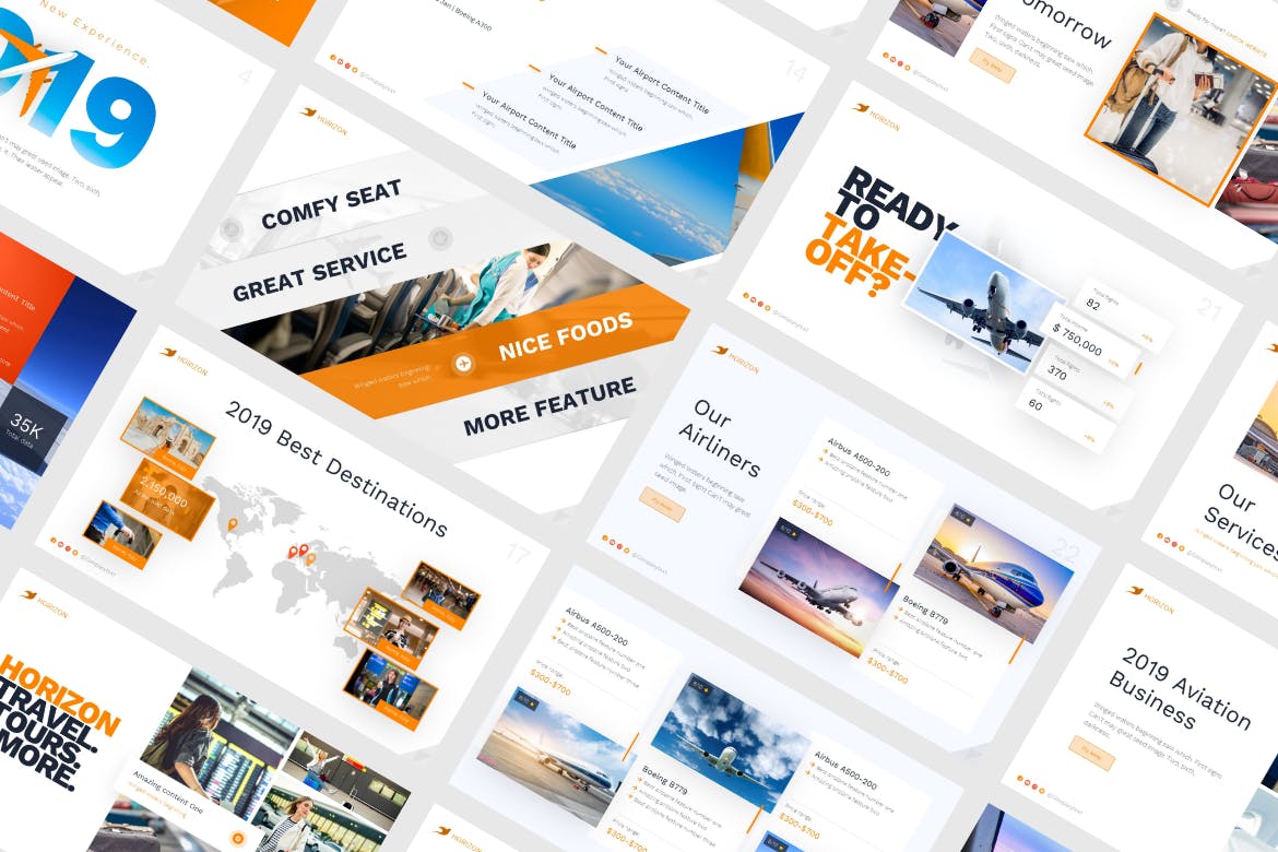 醒目的橙色和独特的图像合成是Horizo​​n Presentation Template的主要品质。里面也有航班信息图表,图表和矢量插图。 Horizo​​n它还具有100个令人惊叹的幻灯片,10个配色方案选项和令人惊叹的动画。还包括免费的矢量图标。