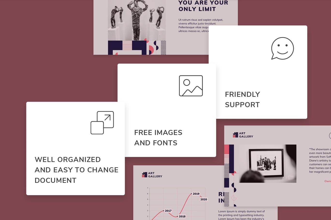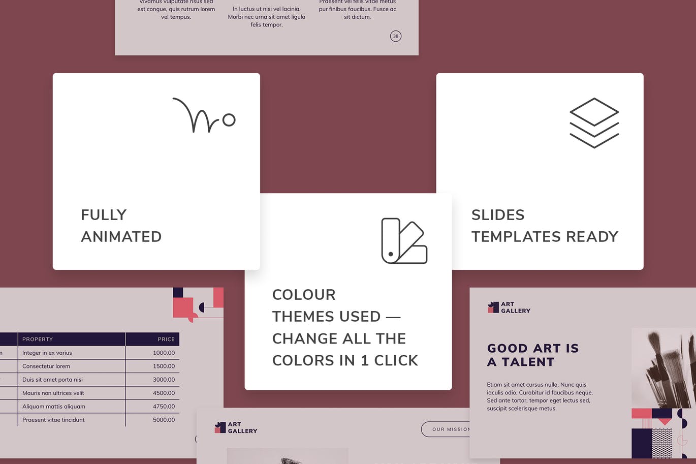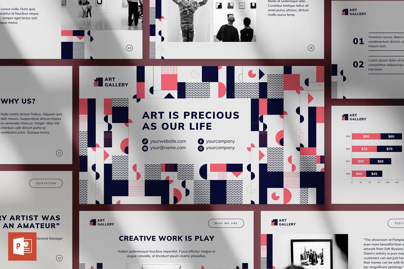 这次老不湿分享的是,时尚高端艺术风格的powerpoint幻灯片演示模板(pptx),现在,您无需花费时间来准备复杂的幻灯片。只需下载此演示文稿,然后单击几下即可替换文本和图像。有更多时间准备演讲。易于使用和定制,用途广泛且主题特定。具有吸引力设计的现代模板,以最佳方式展示您的经营理念。完全可变,旨在满足您的所有要求。每张幻灯片都是完全可编辑,组织合理且引人注目的。