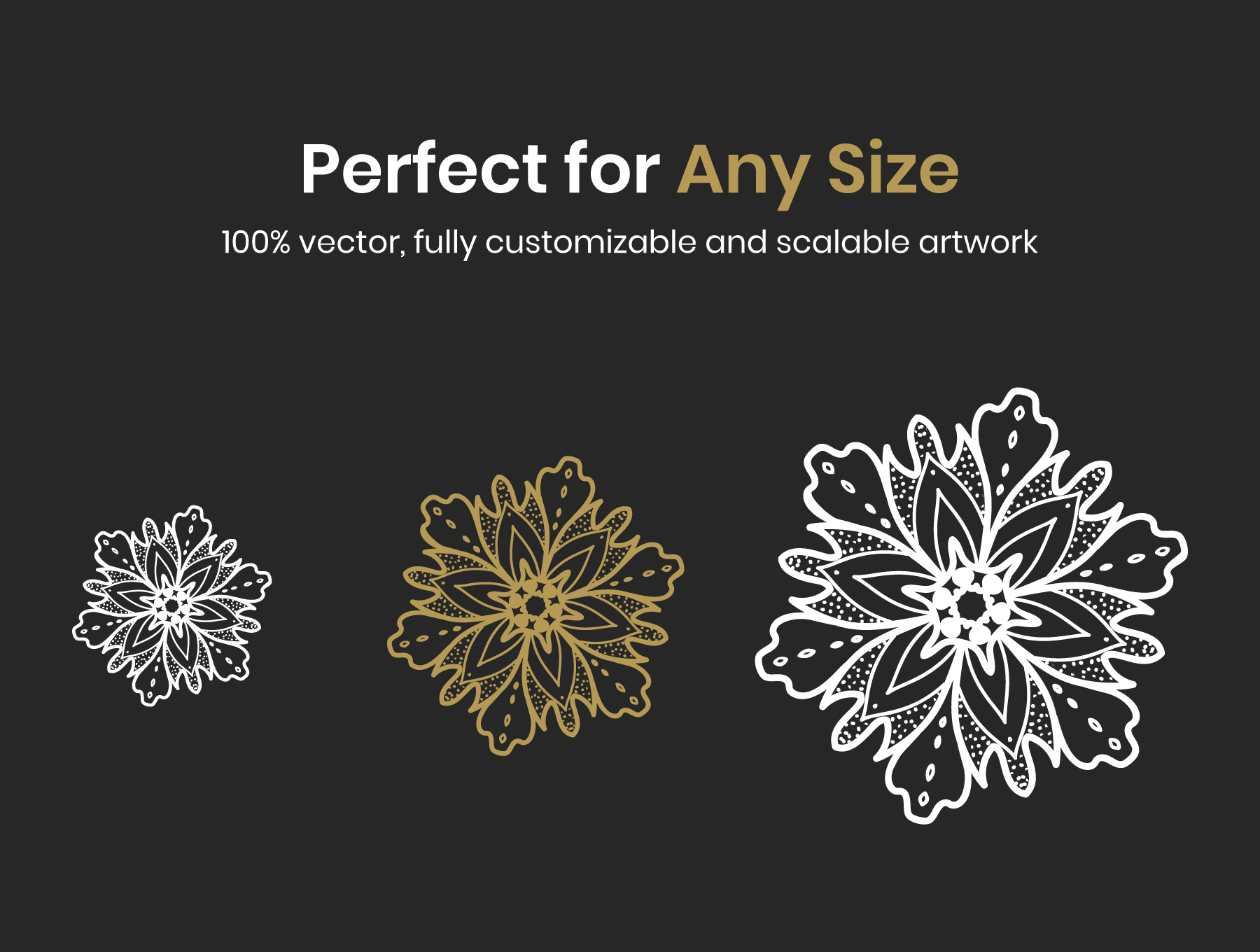 为您带来令人惊叹的曼陀罗艺术收藏。通过拥有这些矢量,您可以创建自己令人惊叹的徽标、图案和邀请模板设计。抓住曼荼罗艺术矢量花卉,丰富您的设计!