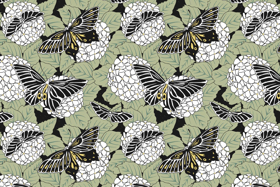 手绘的日本艺术灵感图案,带有蝴蝶和盛开的绣球花。 声明:所有作品均是用户自行上传分享,仅供网友学习交流,请勿作它用。若您的权益被侵害,请及时发邮件联系我们(v918pic@foxmail.com)。在您发送邮件后,工作人员会尽快处理,由于涉及内容不同,所需周期也不同,请您耐心等待。手绘图案无缝图案蝴蝶图案黑蝴蝶 ZZH 海报 链接