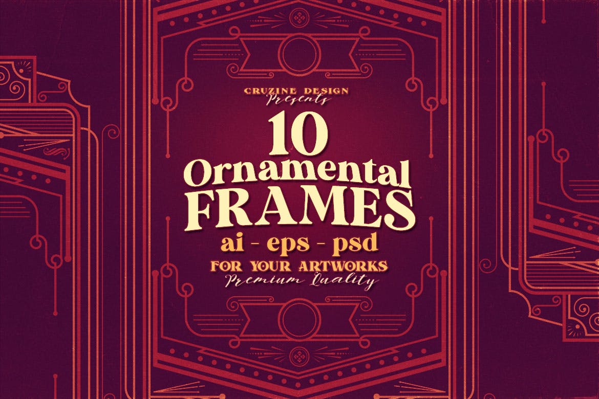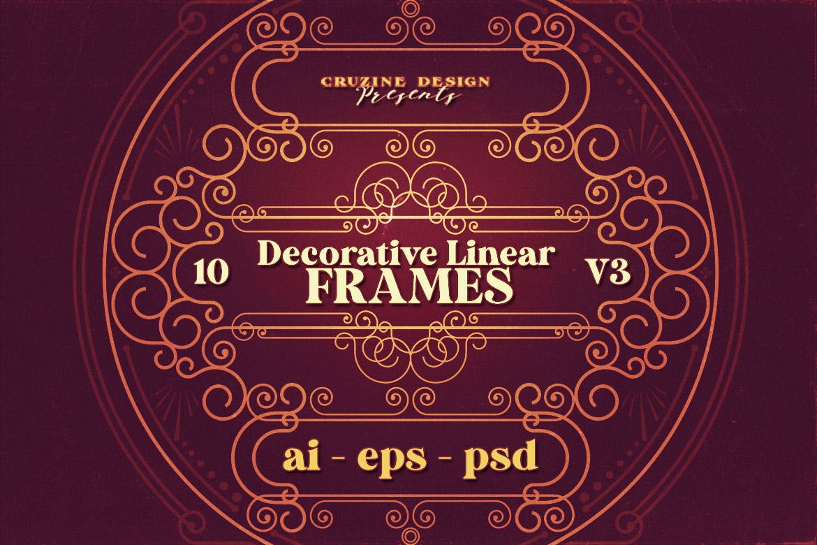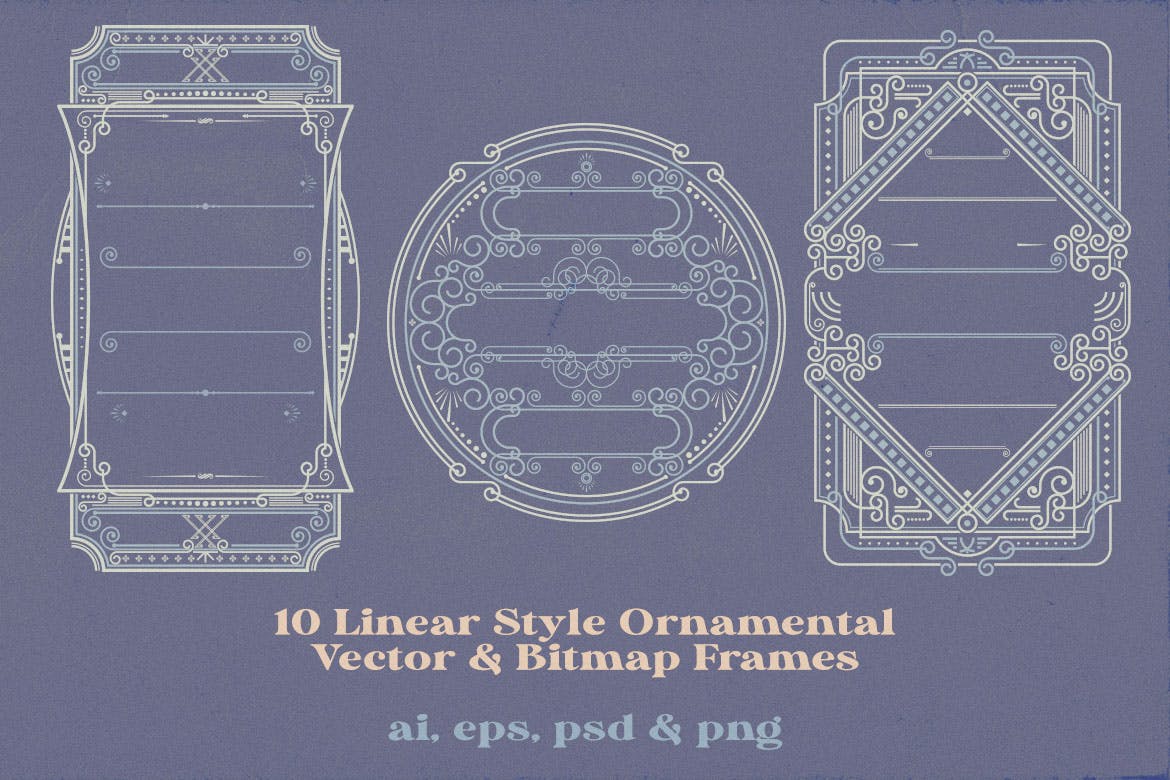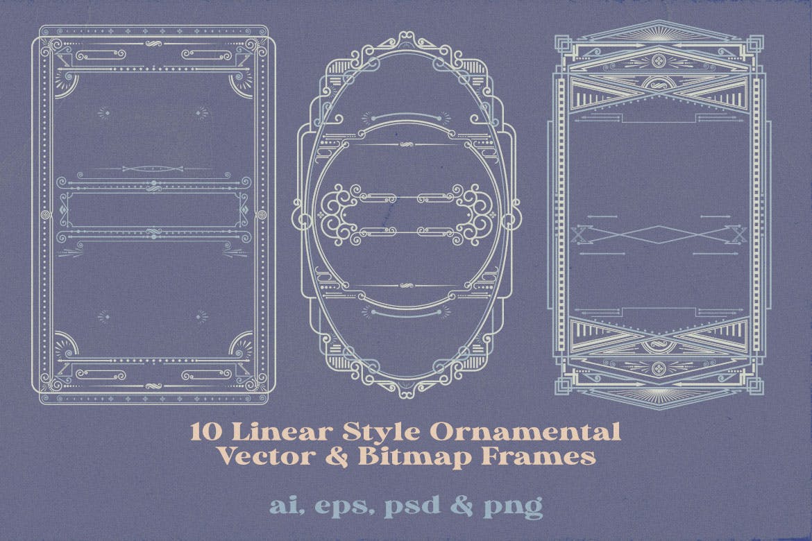 10 个复古/复古/装饰和线性风格框架或装饰背景设计,非常适合用作预览图像或网站或印刷设计的促销图形。 完全可编辑 Adobe Illustrator AI 文件以及具有透明 PNG、分层 PSD 和 EPS 文件的位图软件。10 种线性风格框架设计 – AI、EPS、PNG、PSD,非常适合网页或印刷设计。