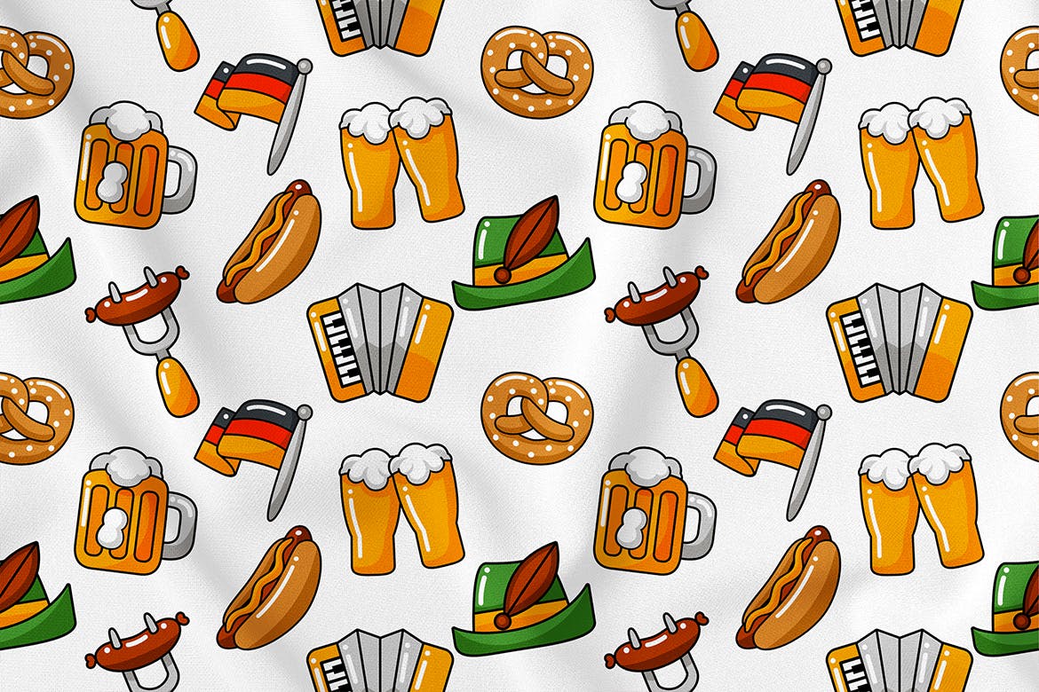 慕尼黑啤酒节元素无缝图案背景素材,您可以为海报印刷框架、织物、衣服、杯子、别针按钮、枕头、手提袋、束带/拉链袋、墙纸桌面、手机壳等创建无数种形式。
