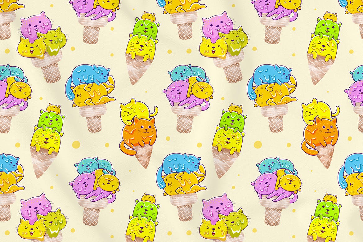 猫咪冰淇淋元素无缝图案背景素材,您可以为海报印刷框架、织物、衣服、杯子、别针按钮、枕头、手提袋、束带/拉链袋、墙纸桌面、手机壳等创建无数种形式。