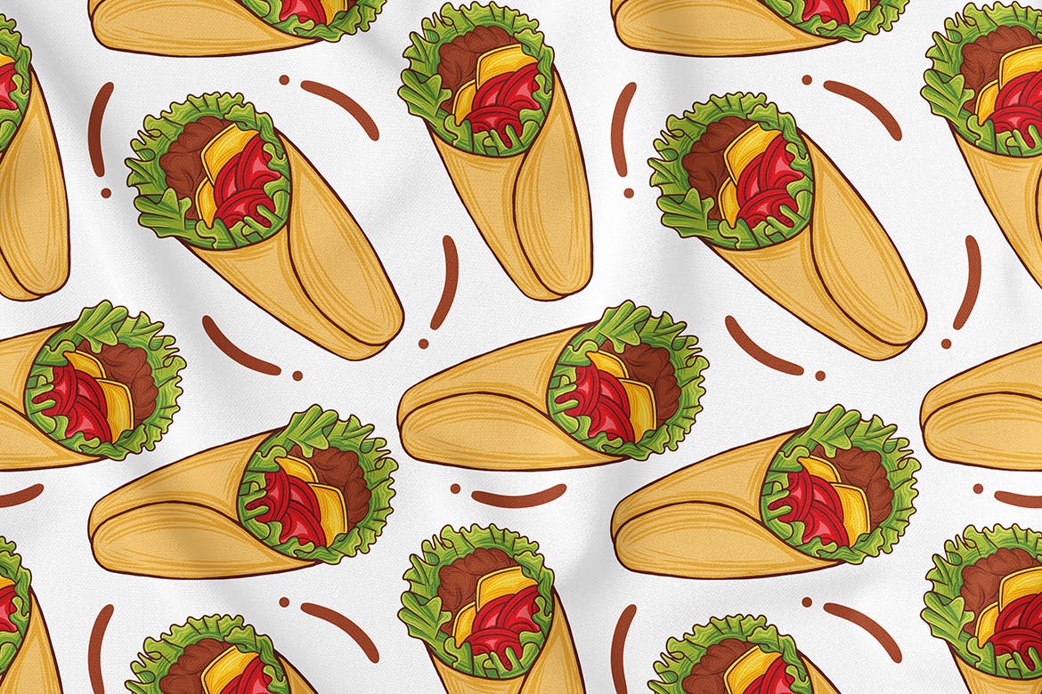 卷饼元素无缝图案背景素材,您可以为海报印刷框架、织物、衣服、杯子、别针按钮、枕头、手提袋、束带/拉链袋、墙纸桌面、手机壳等创建无数种形式。