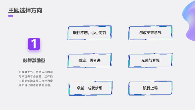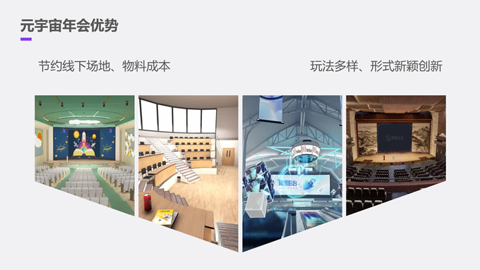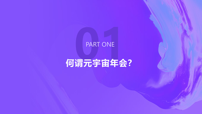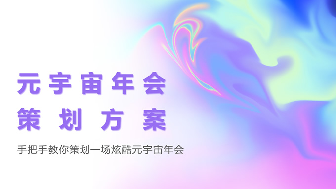简介:炫酷元宇宙年会策划方案ppt模板,本模板共27P,目录:何谓元宇宙年会、流程如何规划、主题如何确定、场地搭建妙招、超全互动方案、平台选择建议,时尚炫彩背景,简约标题文字封面、目录页、过渡页,时尚紫粉配色,完整内容框架简约版式内容页,适合元宇宙主题课件、年会策划方案等场景应用的元宇宙主题ppt模板。
