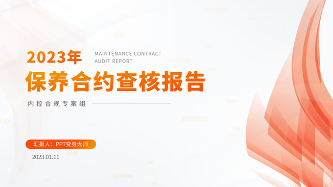 简介:金橙简约商务风保养合约查核报告ppt模板,本模板共8P,纸张创意几何元素设计,金色橙色配色商务版式内容页,PPT竞技场查核报告篇小组优秀作品。