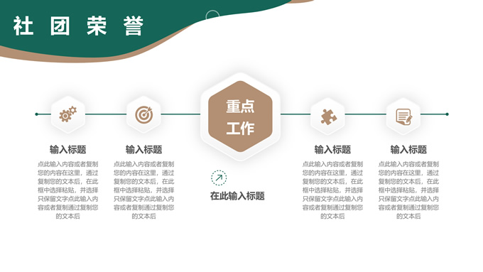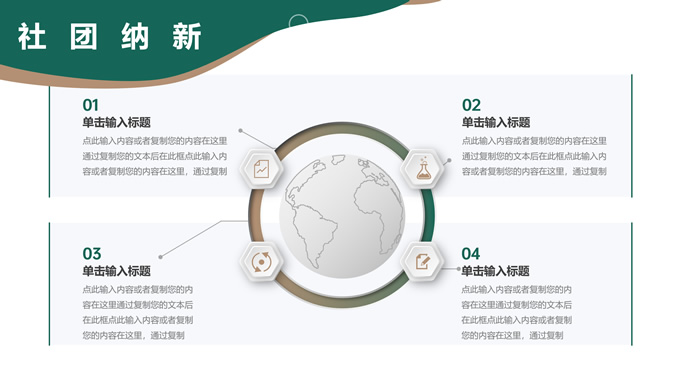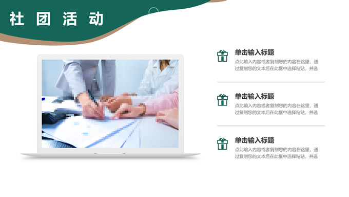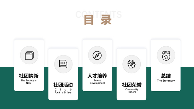 简介:极简风大学生社团工作汇报ppt模板,本模板共13P,目录:社团纳新、社团活动、人才培养、社团荣誉、总结,此套模板庄重成熟,以深绿色以及灰色为基调,给人一种积极向上的感觉,适用于大学生社团工作汇报场景,P界达人 木叶 作品。