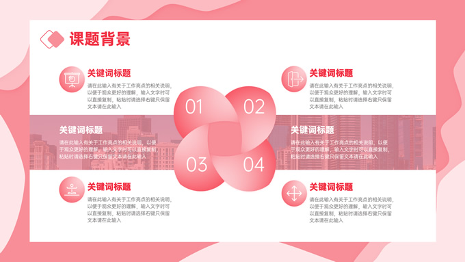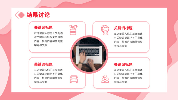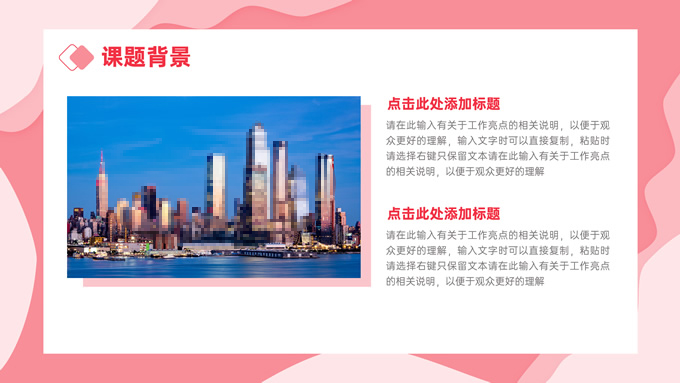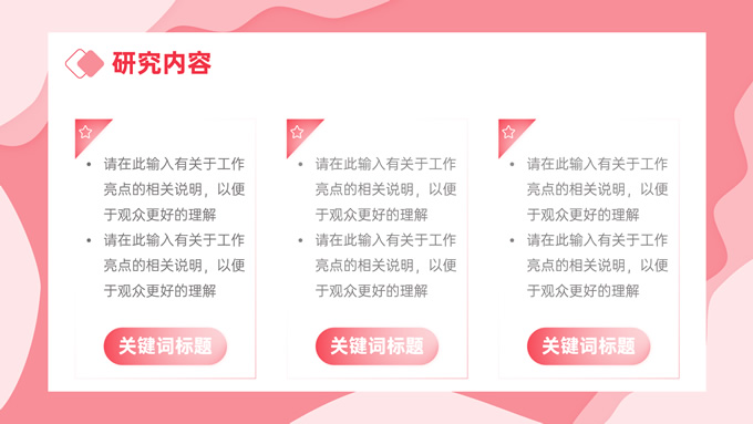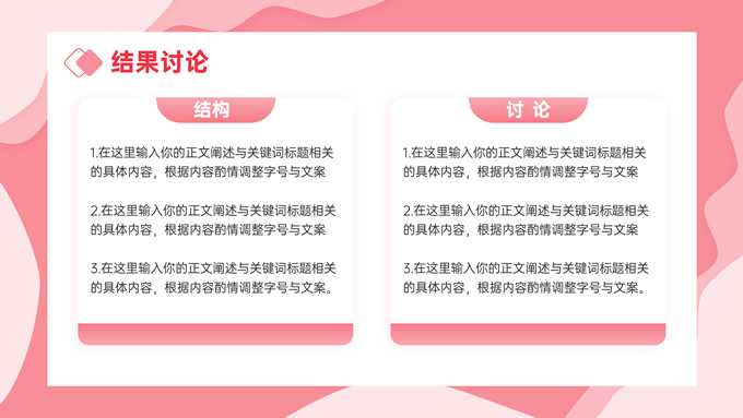 简介:粉色剪纸风毕业论文答辩ppt模板,本模板共27P,目录:课题背景、研究内容、结果讨论、最后总结,剪纸元素流体几何风标题文字封面、目录页、过渡页,渐变粉配色,卡片式矩形框背景简约版式内容页,适合论文汇报、毕业答辩等场景应用的通用型ppt模板,P界达人 张紫怡 作品。