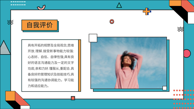简介:色块拼接创意个人求职简历ppt模板,本模板共30P,采用创意色块拼接的形式进行展现,里面元素100%可编辑,包含个人介绍、校园经历、工作经历、项目案例、个人优势和后期规划六个部分,很适合创意类求职等相关个人简介,P界达人 Green 作品。