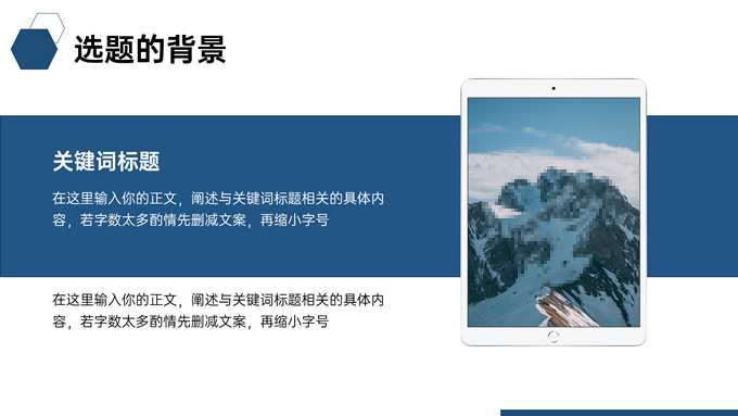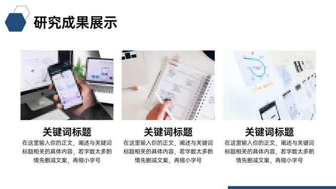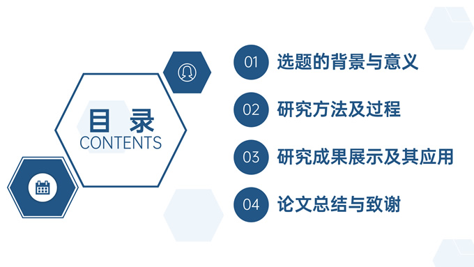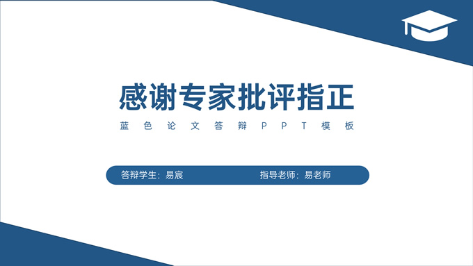 简介:简约蓝几何风论文答辩ppt模板,本模板共17P,这份PPT模板是专为论文答辩设计的,包括选题的背景与意义、研究方法及过程、研究成果展示及其应用、论文总结与致谢,所有元素100%可编辑,支持一键换色和更换字体,P界达人 易宸 作品。