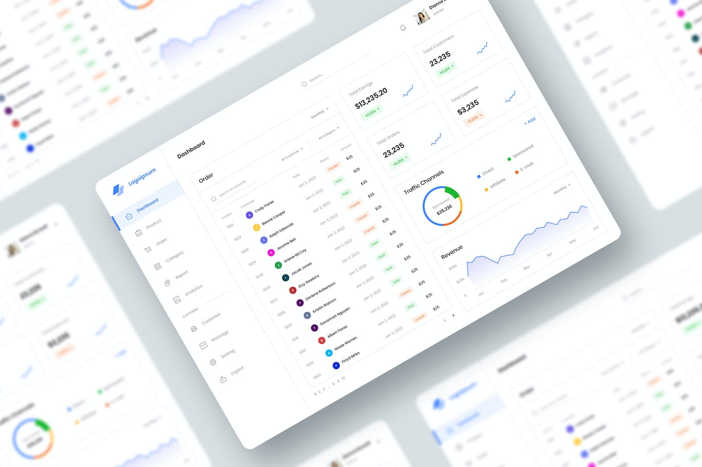 交易仪表板UI套件采用现代外观的Figma设计。完全设计的管理仪表板。