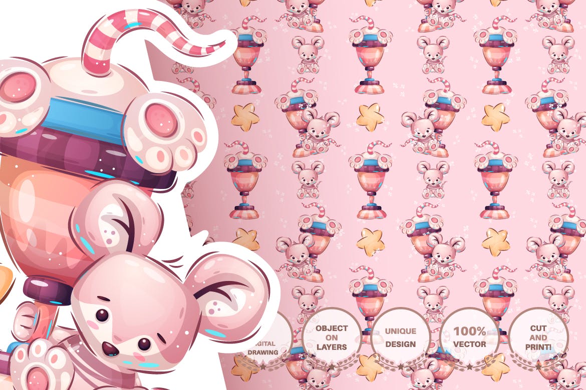 很高兴向您介绍可爱奖杯老鼠动物无缝图案背景素材。使用这个独特的图案表达自己的想法时,发挥自己的创造力。非常适合需要独特手感的任何项目,无论您的想象力是什么,它都可以使您满意!矢量格式,没有大小限制。如果您需要大文件,则还提供AI、EPS文件版本。易于自定义颜色,混合和匹配图案,调整大小和旋转它们,然后轻松应用于任何大小的区域。