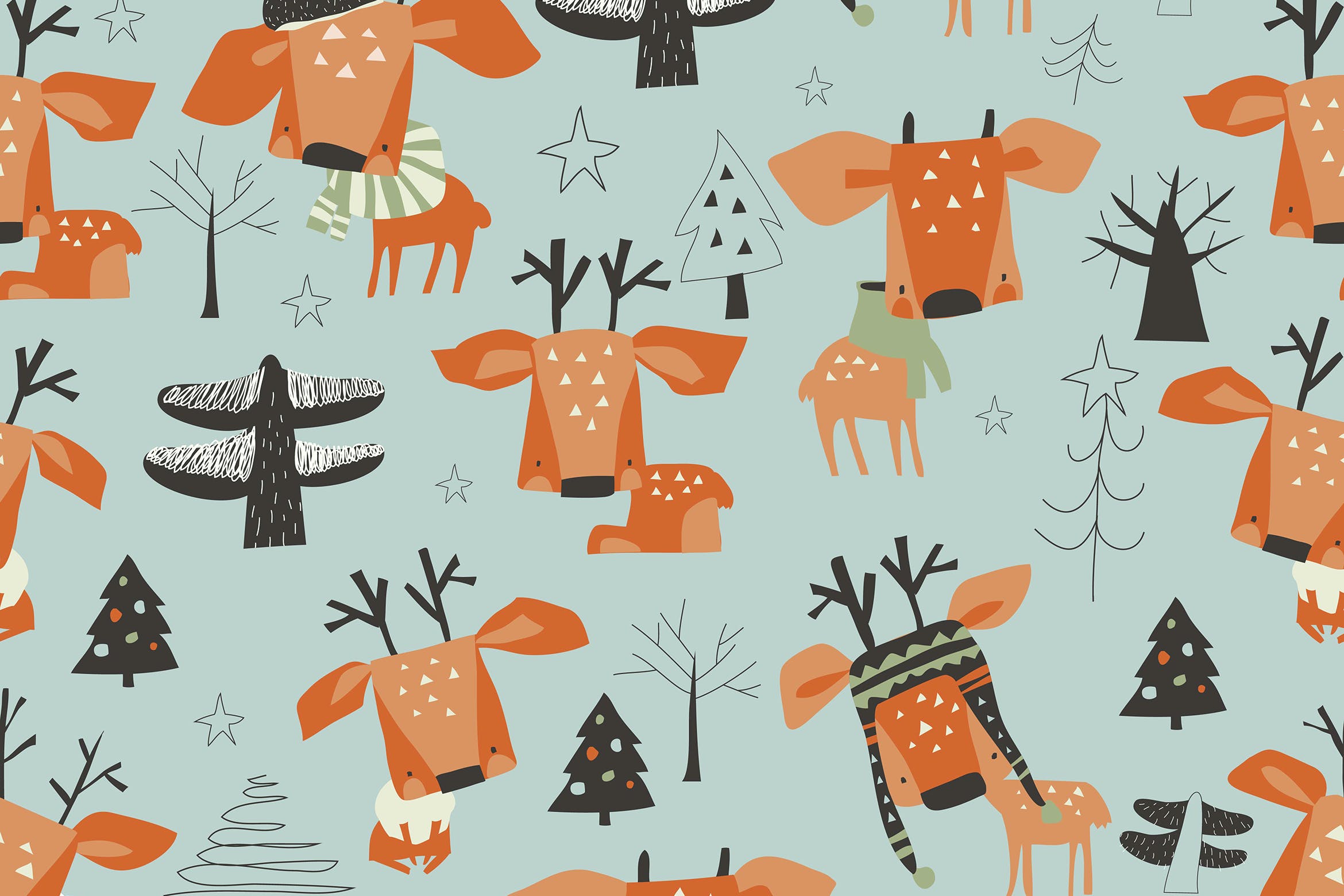 可爱卡通小鹿矢量无缝图案背景素材,适用于贺卡、包装、横幅、书籍、印刷、封面、海报、传单、邀请函设计等各种图形项目。