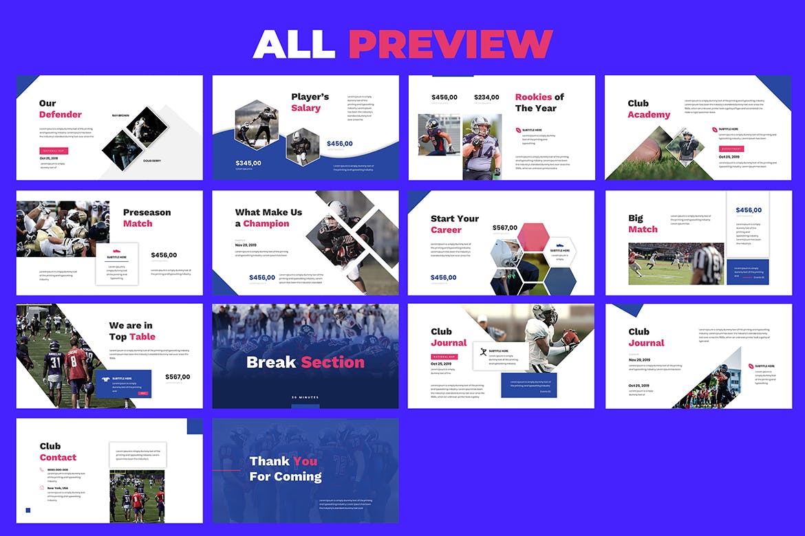 这次老不湿分享的是,高品质的震撼美式足球橄榄球powerpoint幻灯片演示模板(pptx),美式橄榄球Google幻灯片模板是橄榄球俱乐部的演示文稿模板,为您提供有效的方式介绍您的美式橄榄球业务,并提供平面设计,简洁,经典,简约,现代的演示文稿。如果您正在寻找专业模板,则可以选择该模板。