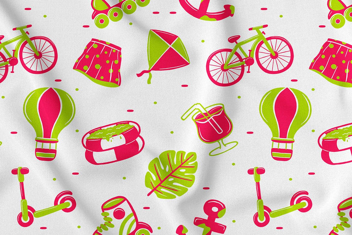 夏季元素无缝图案背景素材v2,您可以为海报印刷框架、织物、衣服、杯子、别针按钮、枕头、手提袋、束带/拉链袋、墙纸桌面、手机壳等创建无数种形式。