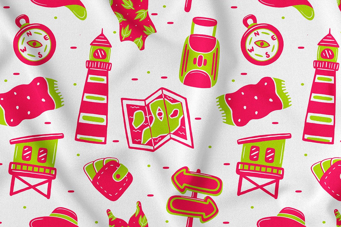 夏季元素无缝图案背景素材,您可以为海报印刷框架、织物、衣服、杯子、别针按钮、枕头、手提袋、束带/拉链袋、墙纸桌面、手机壳等创建无数种形式。