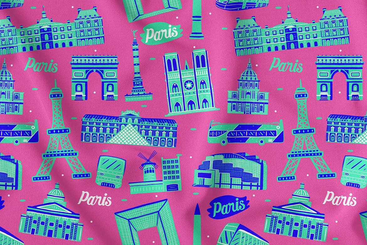 法国巴黎元素无缝图案背景素材,您可以为海报印刷框架、织物、衣服、杯子、别针按钮、枕头、手提袋、束带/拉链袋、墙纸桌面、手机壳等创建无数种形式。
